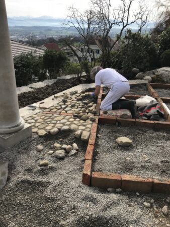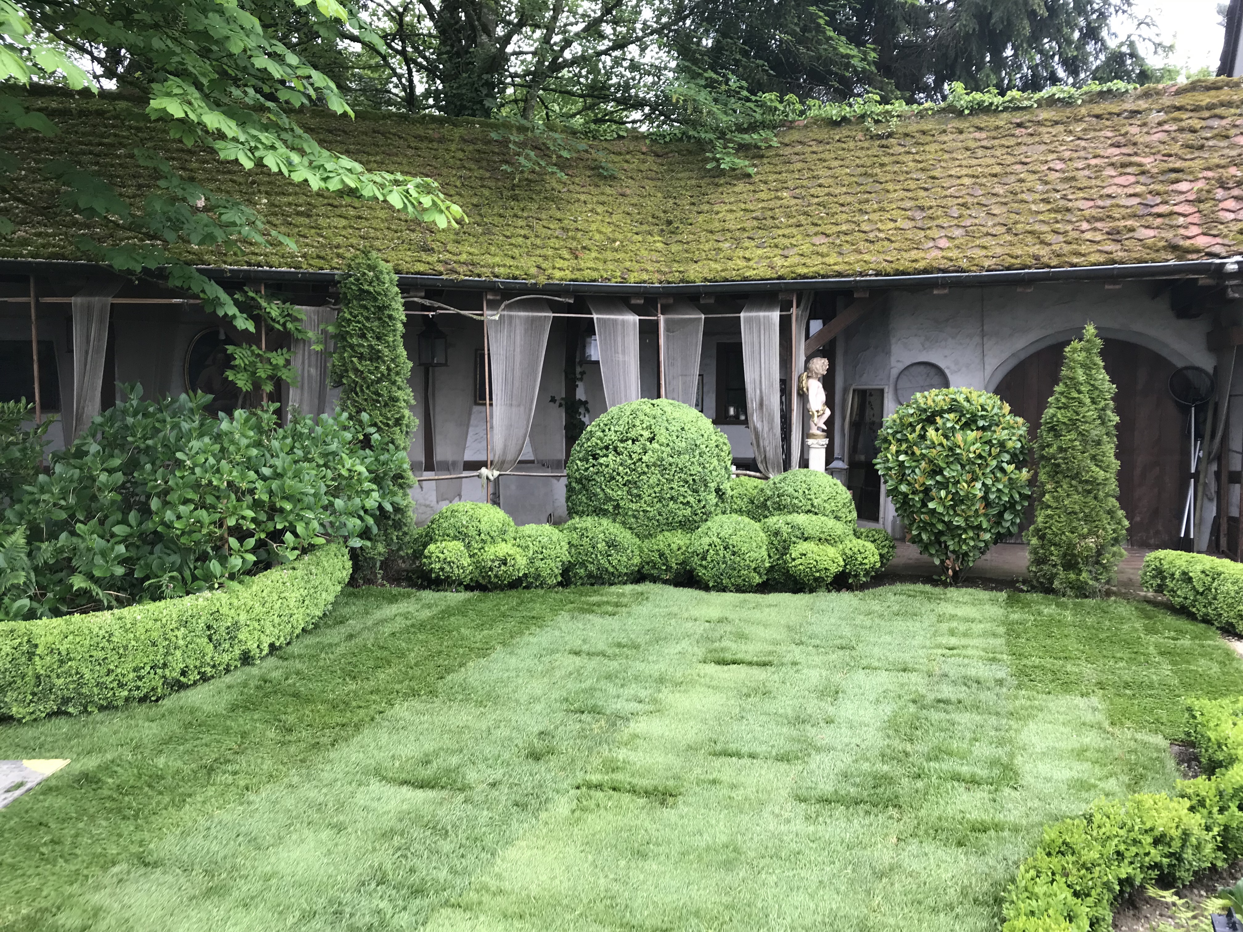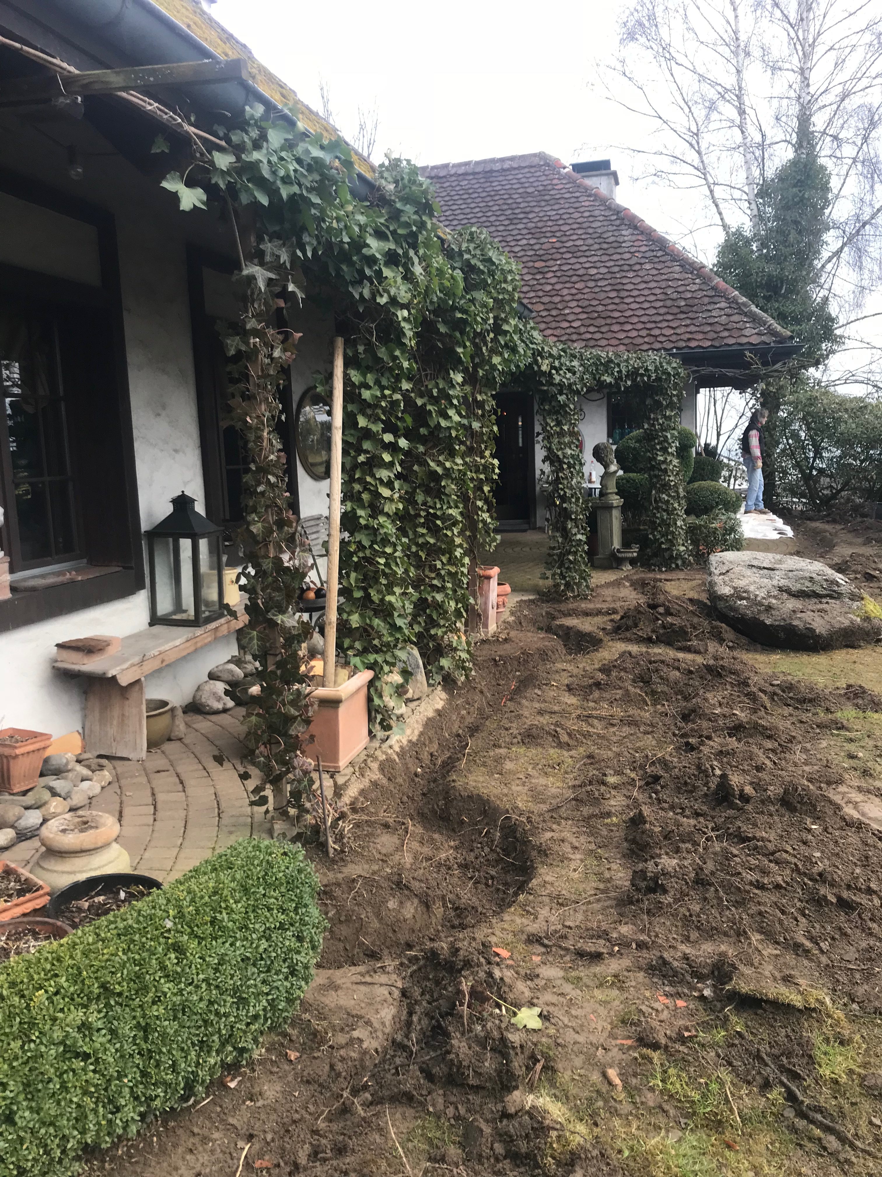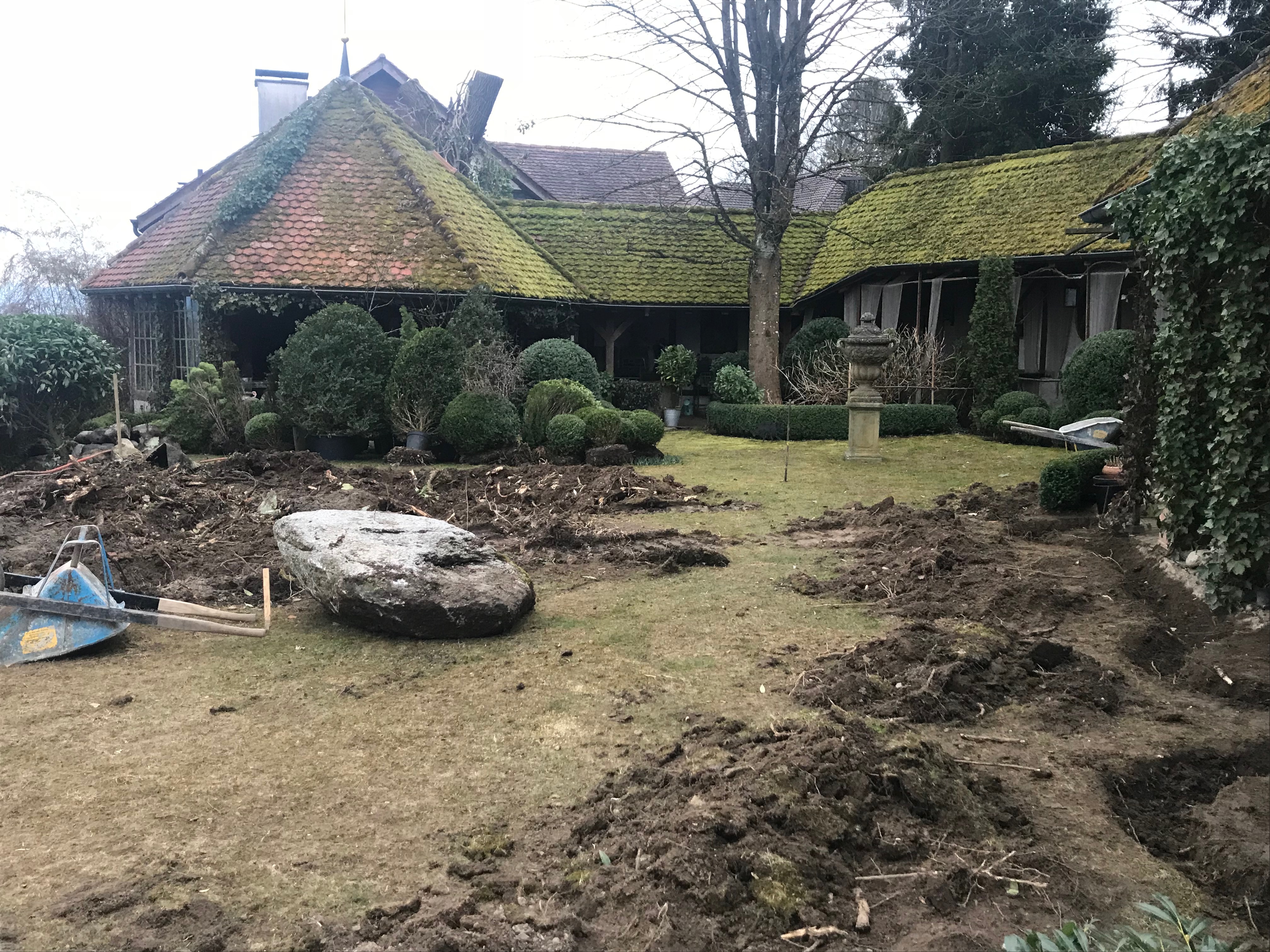Garten Neugestaltung Frühling 2018Projekt und Grossteil der Ausführung Albrik Kuhn.Wie der Garten war…und wie er jetzt ist.Die Entwicklung von romantisch verspielt zu klassisch.